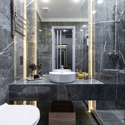 В последние десятилетия в нашей стране сформировалась и значительно выросла своя школа архитектуры и дизайна. Природный камень используют более разумно: для пола в холлах, для пола и стен в санузлах и туалетах, для столешниц, кухонных рабочих поверхностей. Делают из камня лестницы в домах, антресоли в многоуровневых квартирах.